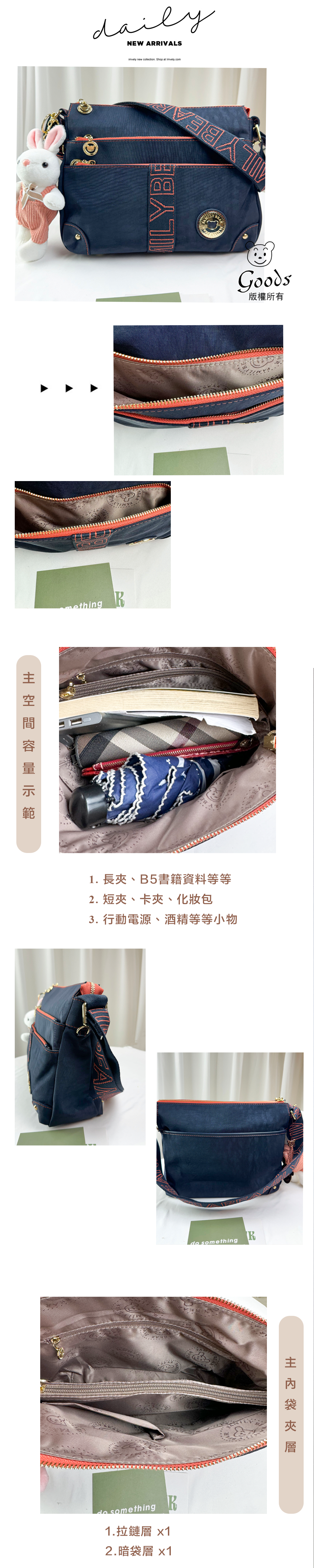 ✒︎採用防潑水布料,不怕下雨淋濕包包內裡重要物品。