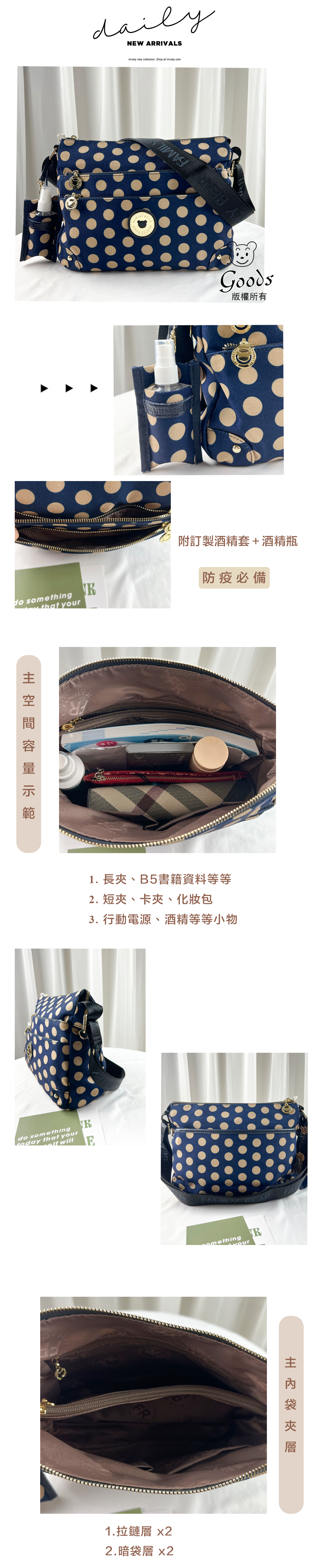 FamilyBear 卡其點點側背包 附酒精保護套+酒精瓶 #2045