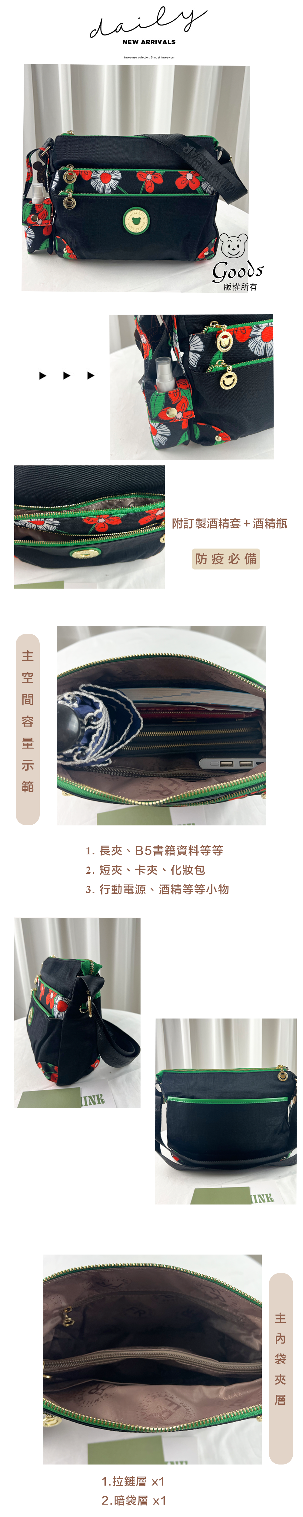 FamilyBear 黑橙花側背包 附酒精保護套+酒精瓶 #2045