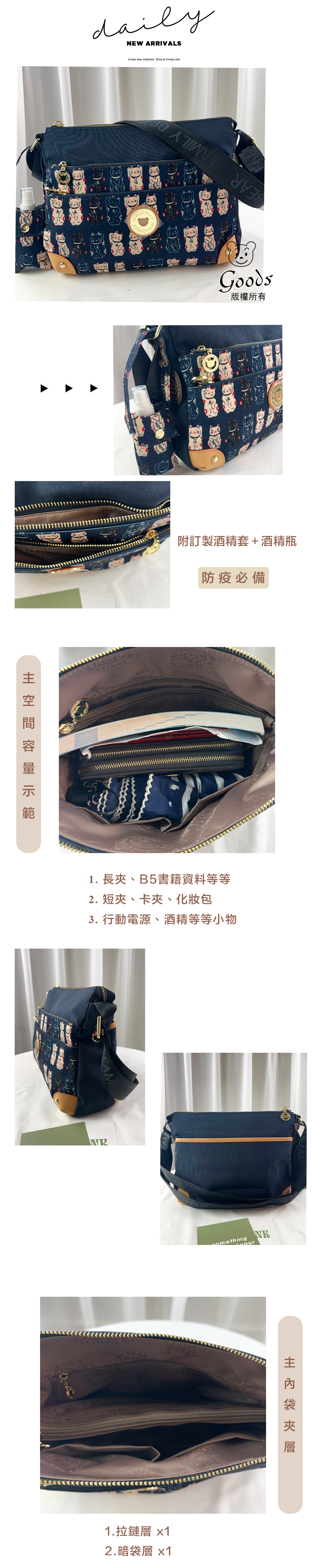 ●  規格:主空間x1  內拉鍊袋x2  暗格x2  前測拉鍊x2  後測拉鍊x1