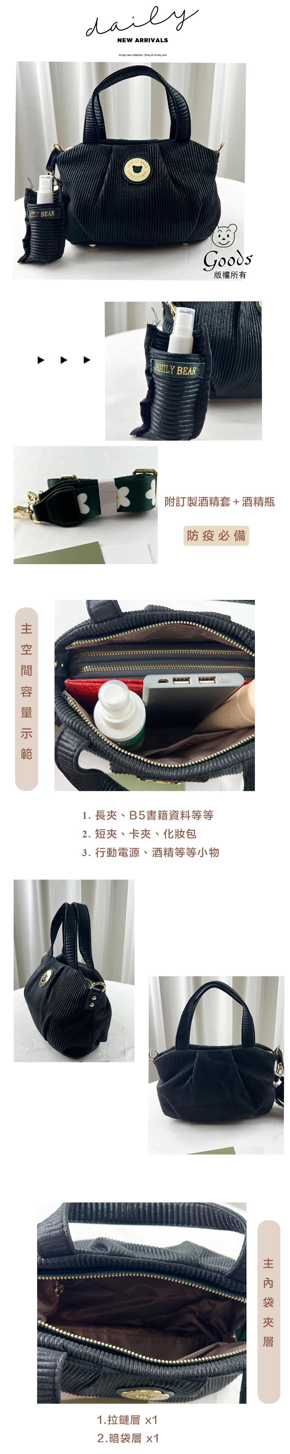 ●  規格:主空間x3  內拉鍊袋x1  暗格x1