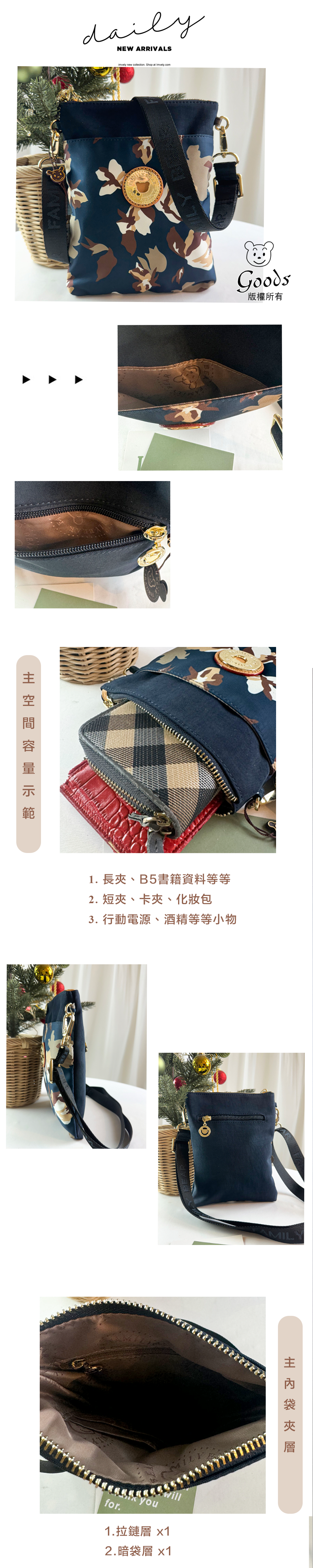 ✒︎採用防潑水布料,不怕下雨淋濕包包內裡重要物品。