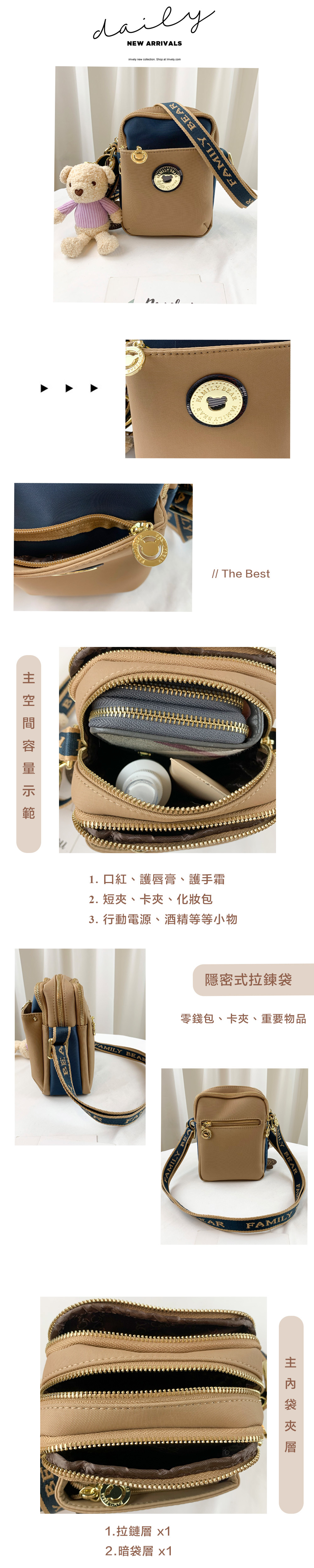 ✒︎三層主空間分層收納,亦可當作手機包出門使用