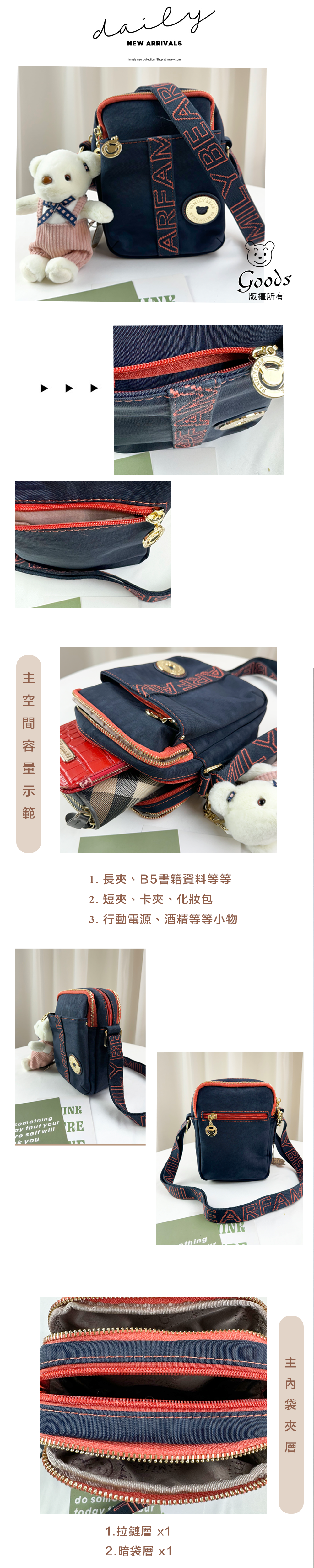 ✒︎三層主空間分層收納,亦可當作手機包出門使用