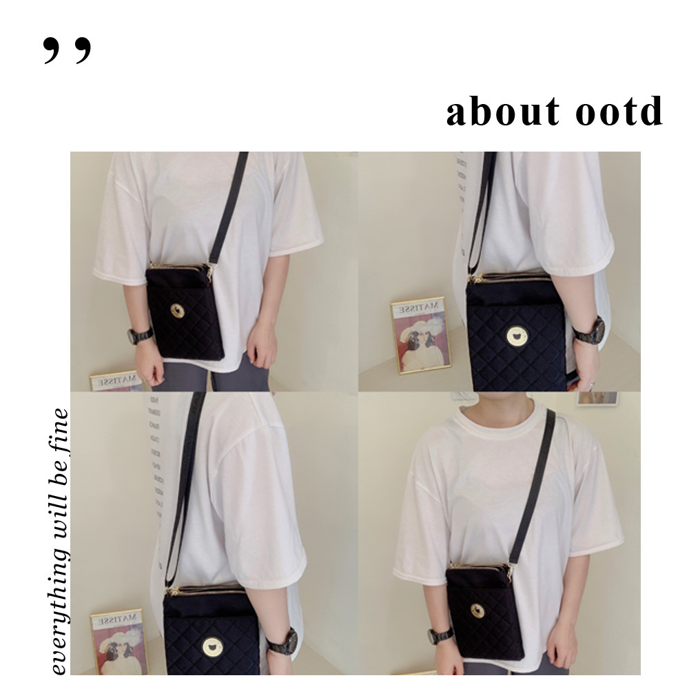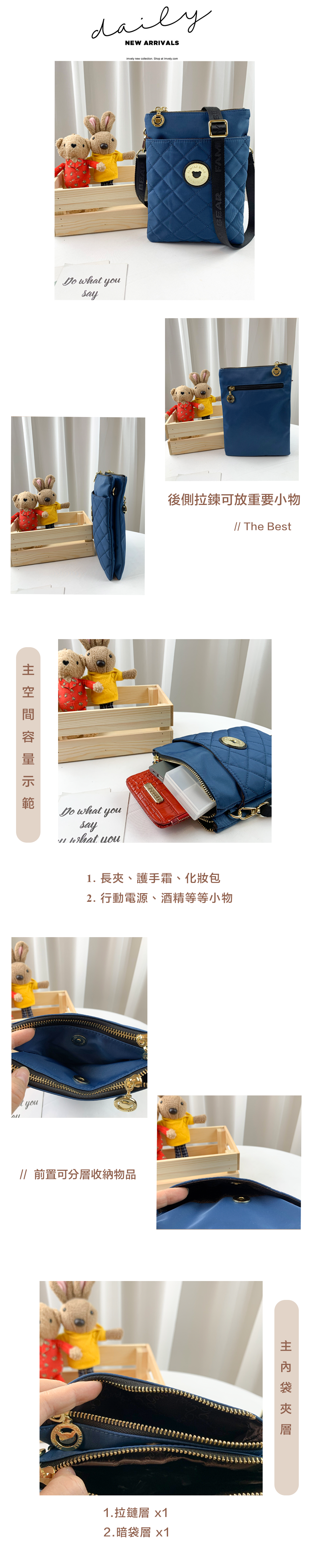 FamilyBear 海軍藍 菱格紋防潑水雙層側背包 / 手機袋 #2505-1
