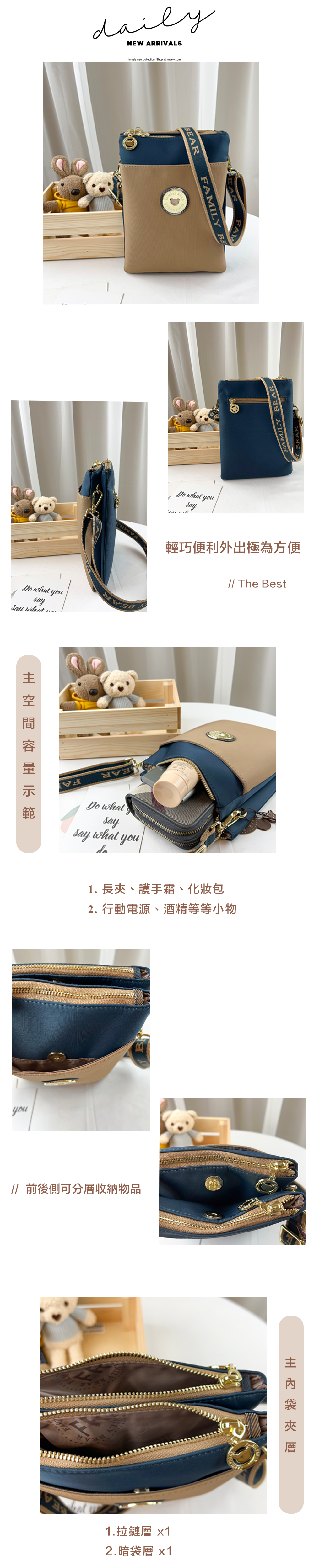 ✒︎採用防潑水布料,不怕下雨淋濕包包內裡重要物品。