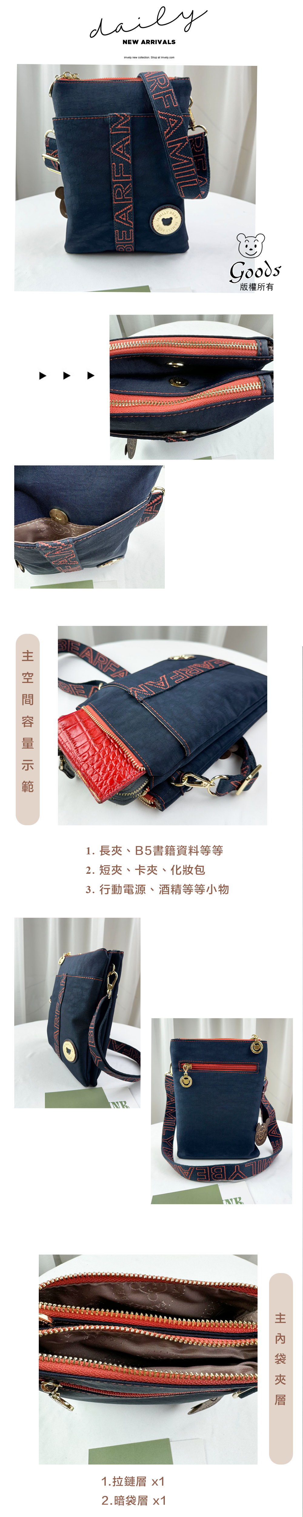 ●  規格:主空間x2  內拉鍊袋x1  暗格x1  前測收納x1  後測拉鍊x1
