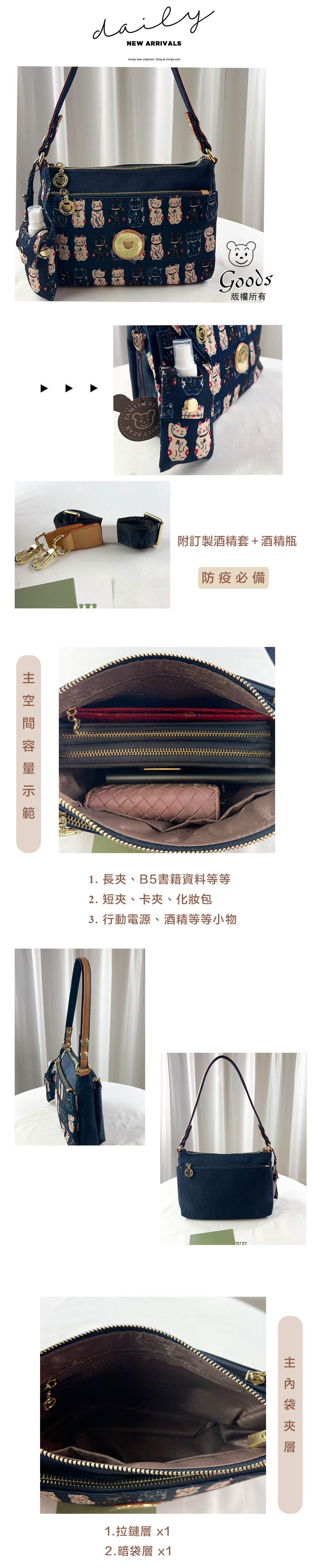 FamilyBear 招財貓拼色防潑水肩背包 / 側背包 #2563