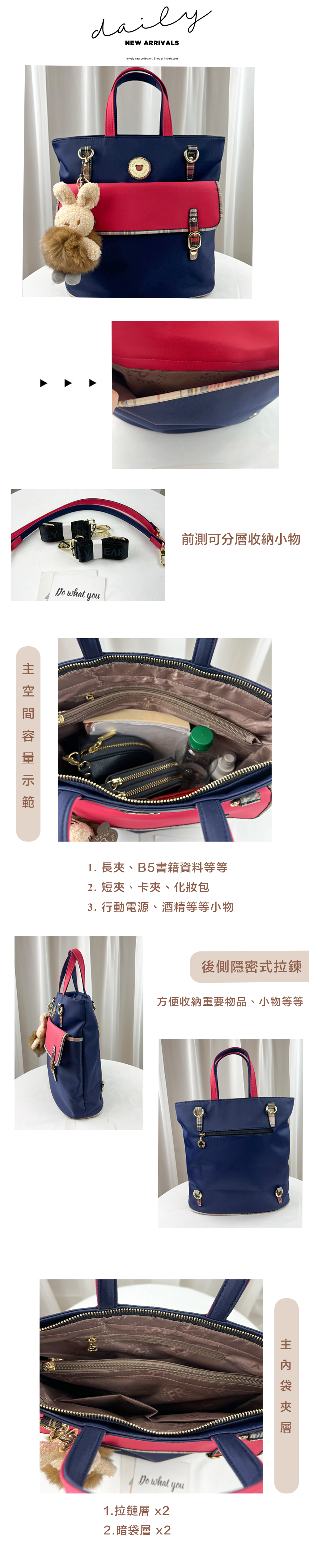 ✒︎採用防潑水布料,不怕下雨淋濕包包內裡重要物品。