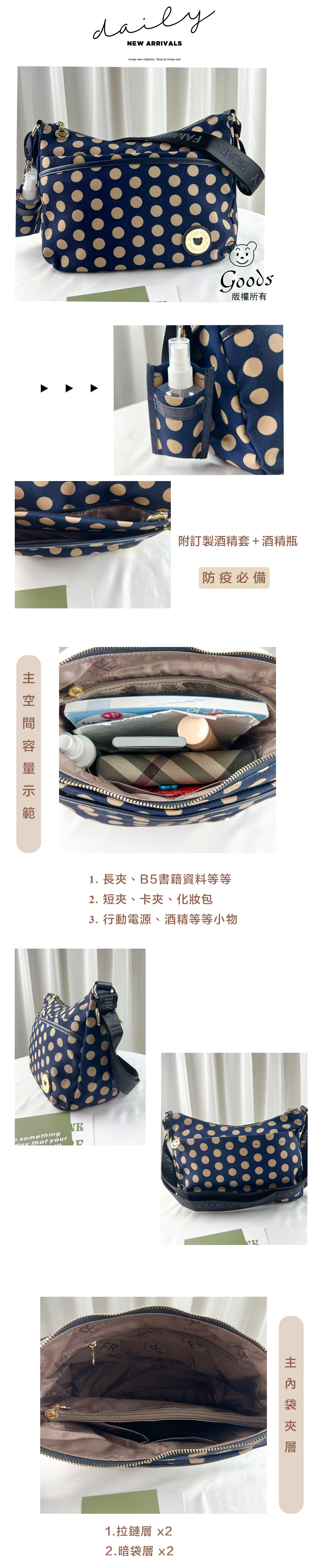 FamilyBear 卡其點點側背包 附酒精保護套+酒精瓶 #2638