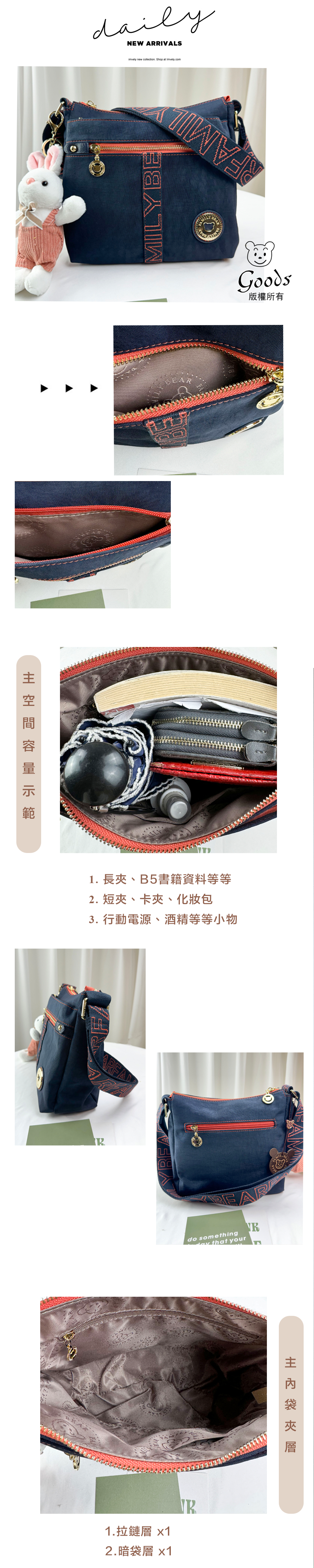 FamilyBear 藍橙織帶防潑水肩背包 / 側背包 附兔兔吊飾 #2676