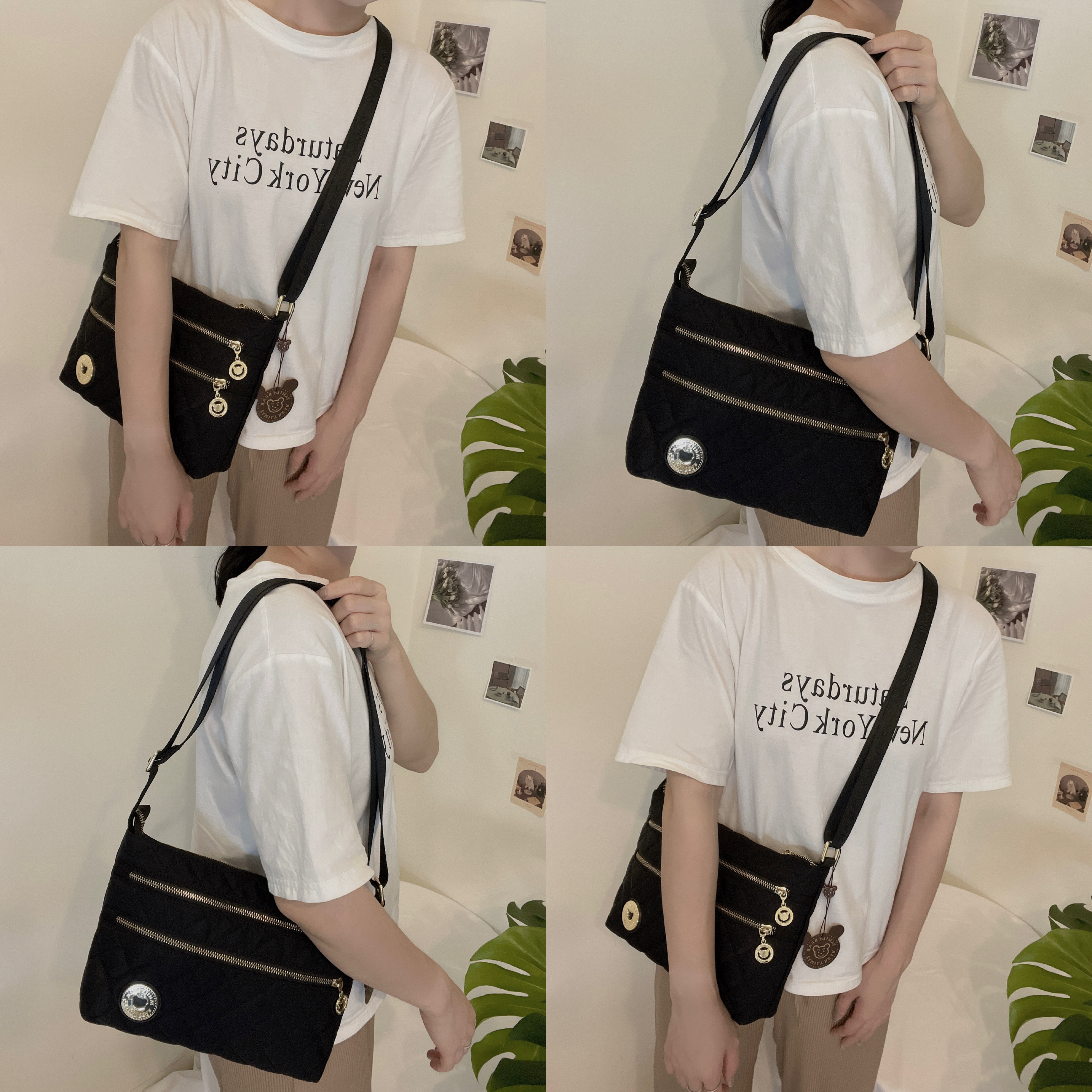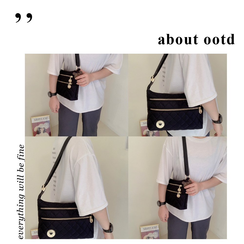 FamilyBear 經典黑 菱格紋防潑水側背包 #2723