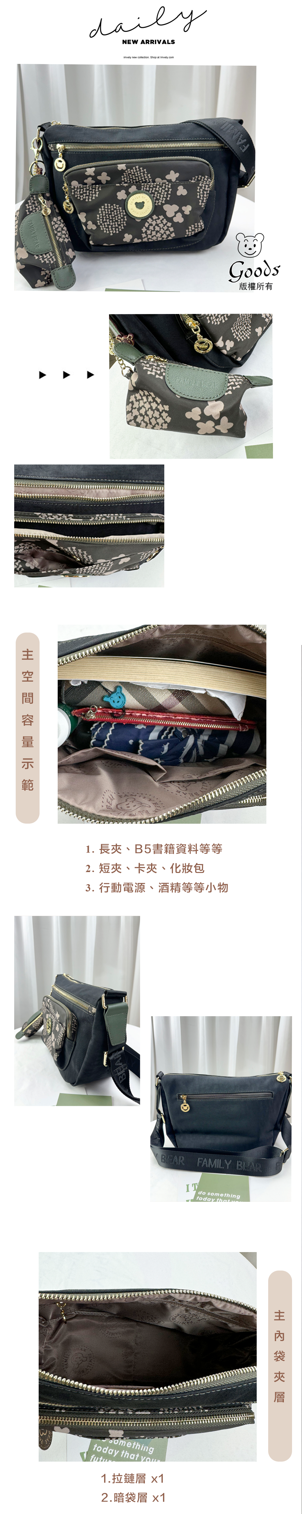 FamilyBear 墨綠圖騰防潑水側背包 附零錢包 #2862