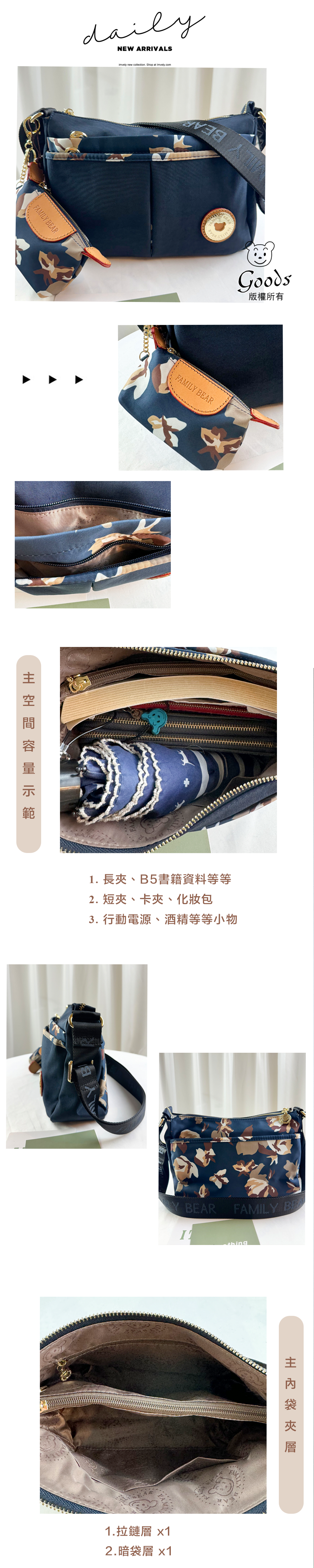 FamilyBear 蝴蝶花拼接藍防潑水側背包 附零錢包 #2746