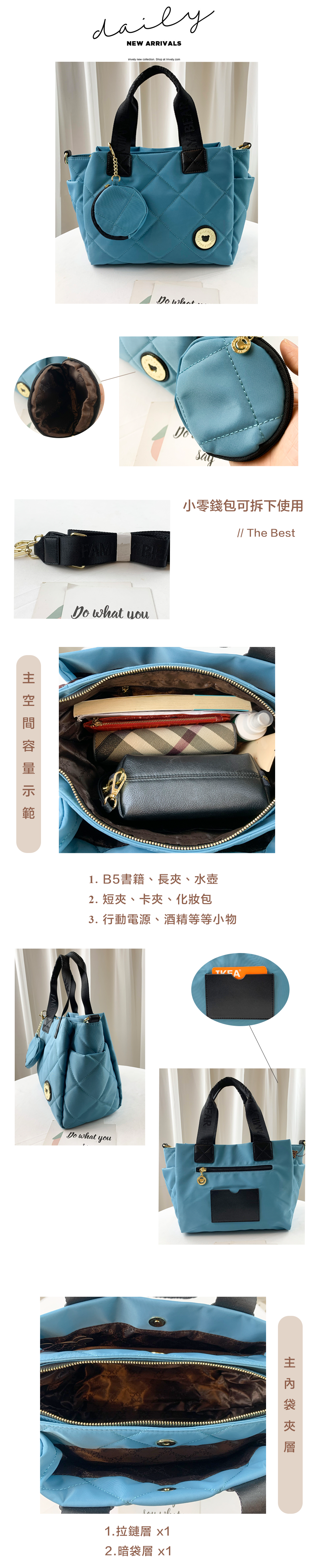 ✒︎採用防潑水布料,不怕下雨淋濕包包內裡重要物品。