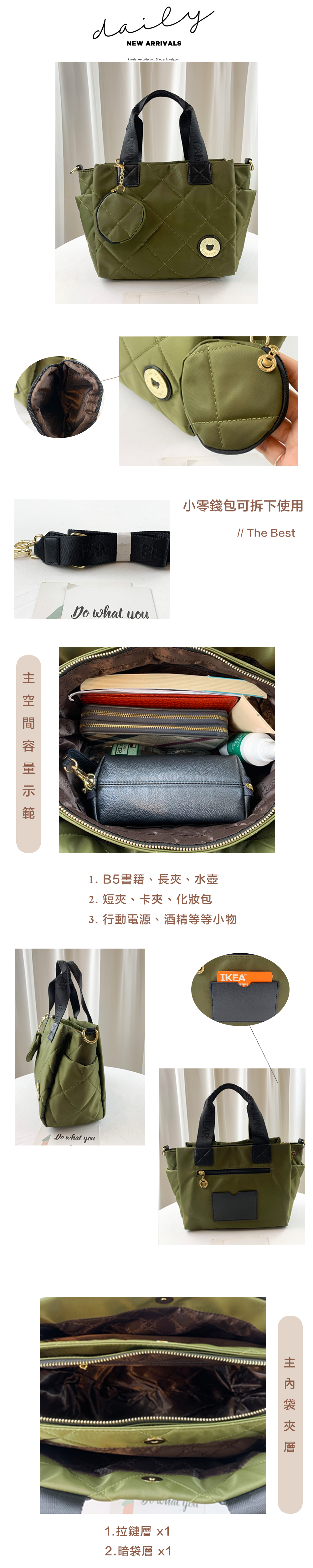 FamilyBear 抹茶綠 菱格紋防潑水手提包 / 側背包 附小零錢包 #2751