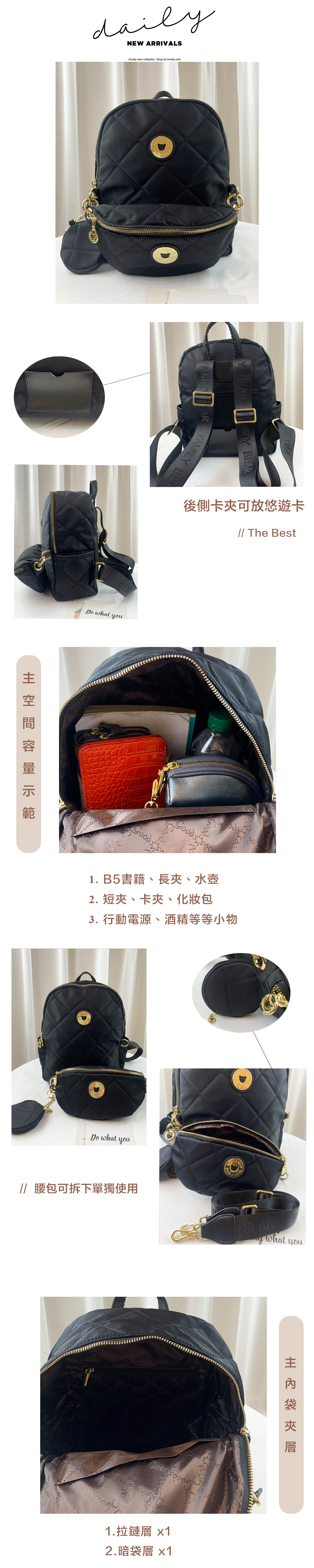 ✒︎前面小腰包可拆下單獨使用,附贈長背帶。