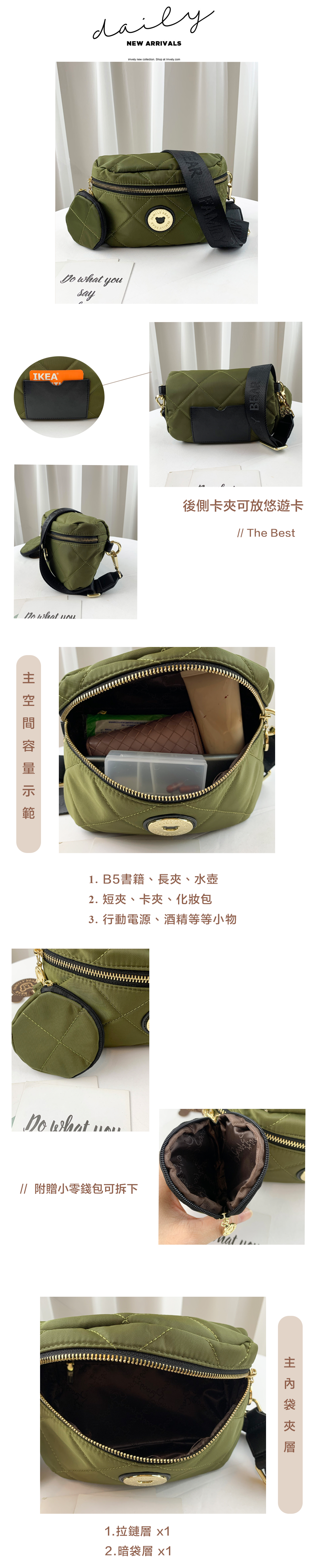●  規格:主空間x1  內拉鍊袋x1  暗格x1  後側卡夾x1