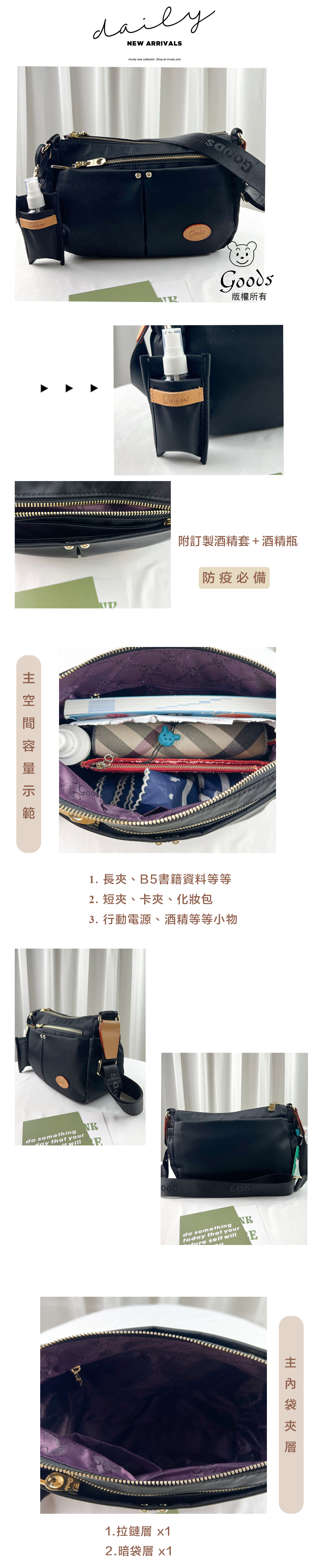 GOODS 素面尼龍防潑水側背包 附酒精保護套+酒精瓶 #2806