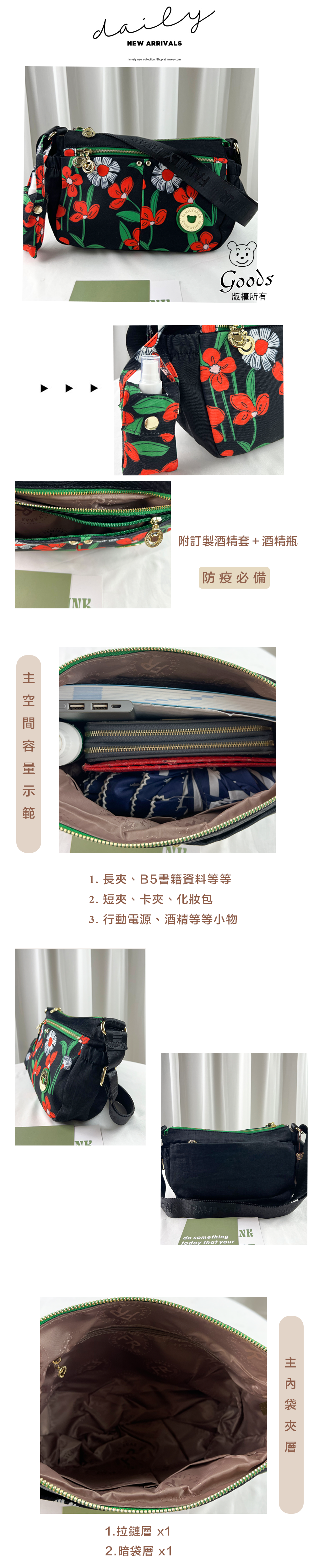 FamilyBear 黑橙花側背包 附酒精保護套+酒精瓶 #2806