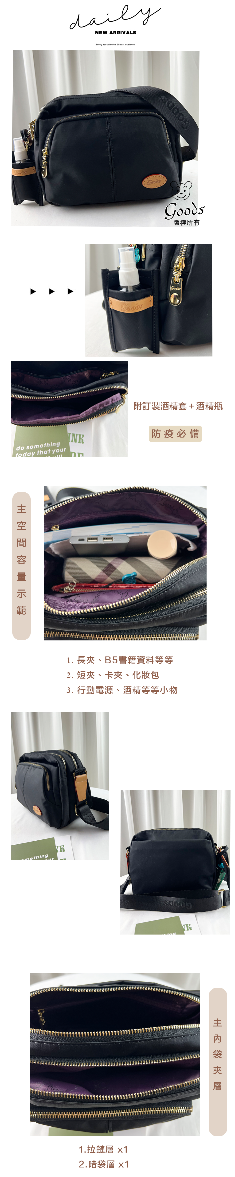 GOODS 素面尼龍防潑水側背包 附酒精保護套+酒精瓶 #2812