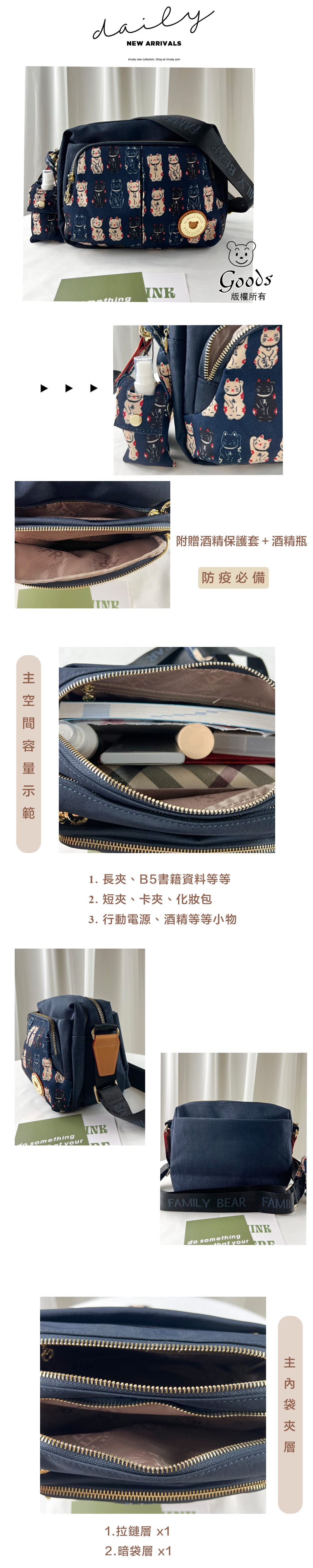 ●  規格:主空間x1  內拉鍊袋x1  暗格x1  前測拉鍊x2  後測拉鍊x1