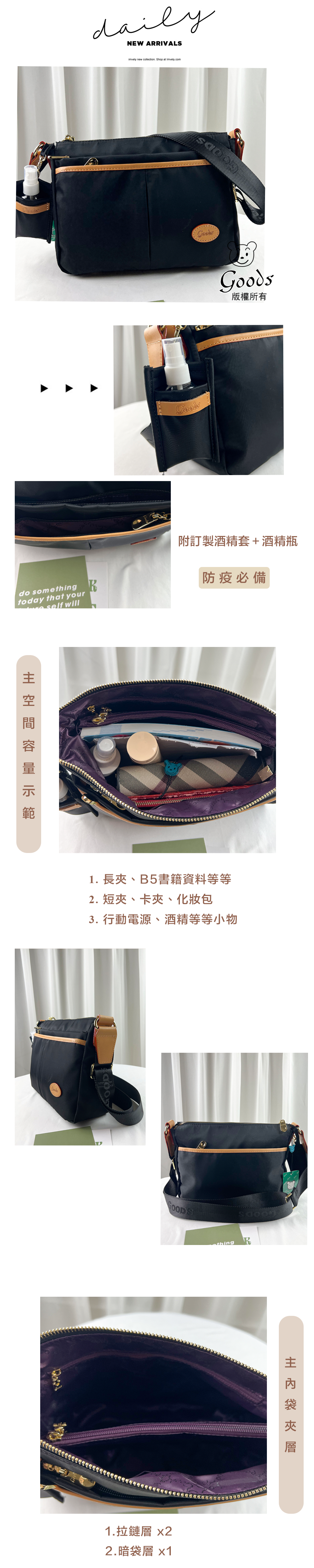 GOODS 素面尼龍防潑水側背包 附酒精保護套+酒精瓶 #2814