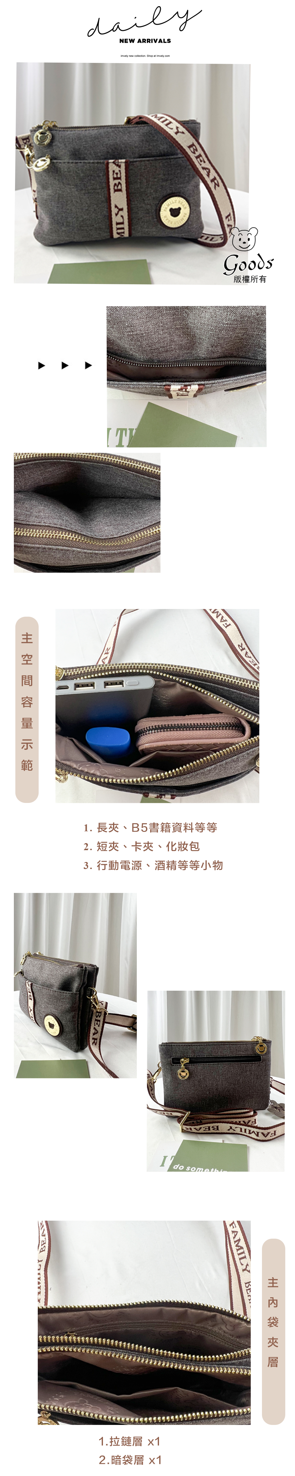 FamilyBear 織帶灰配咖防潑水側背包 #2835