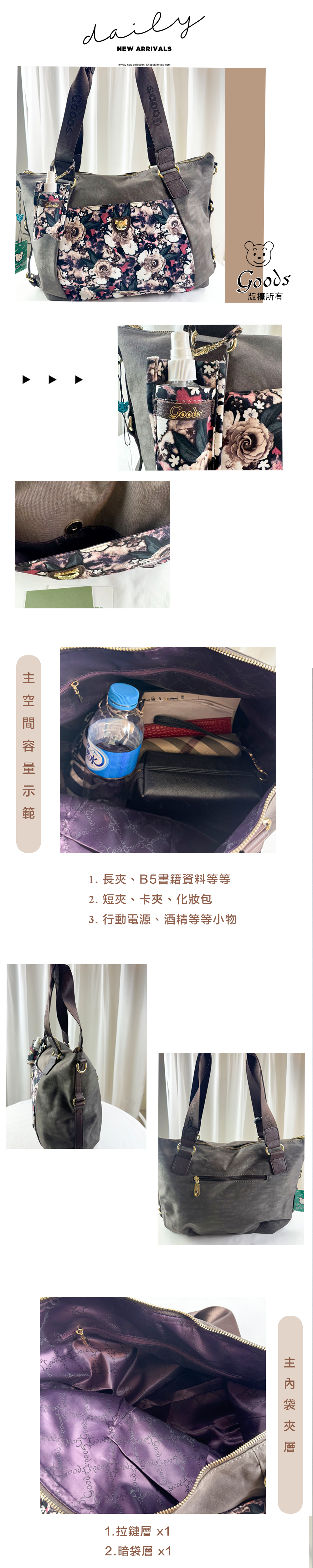 GOODS 咖啡花拼色防潑水手提包 / 側背包 附酒精保護套+酒精瓶 #2840