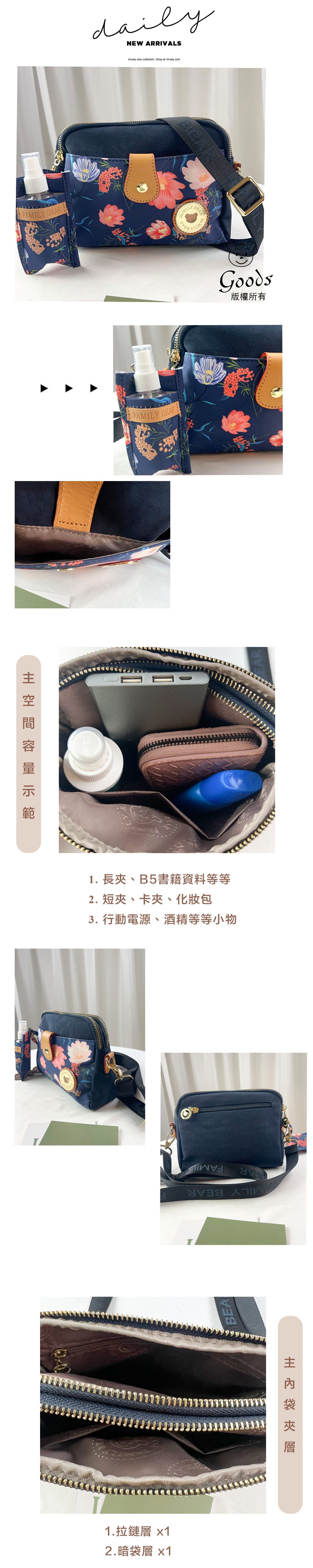 FamilyBear 藍橙花拼色防潑水側背包 附酒精保護套+酒精瓶 #2851