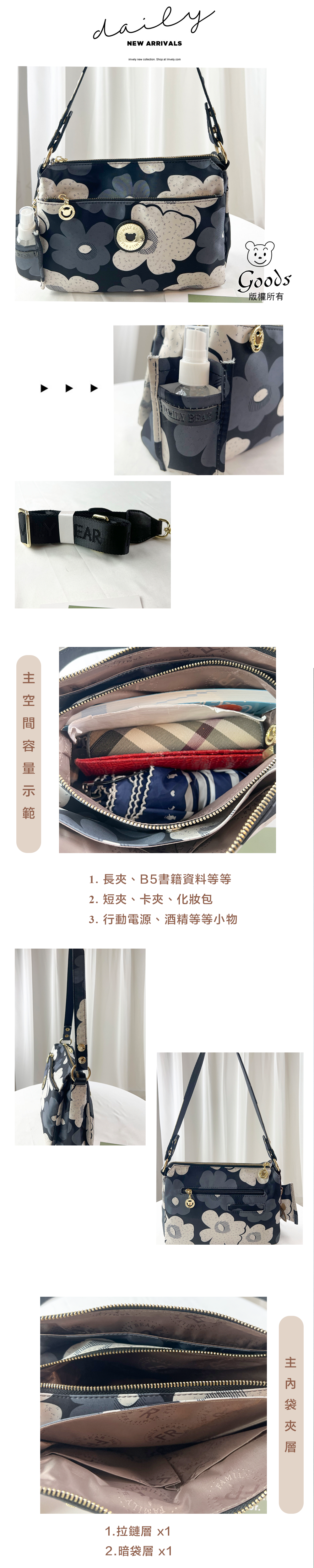 FamilyBear 藍白花朵防潑水肩背包 / 側背包 附酒精保護套+酒精瓶 #29259