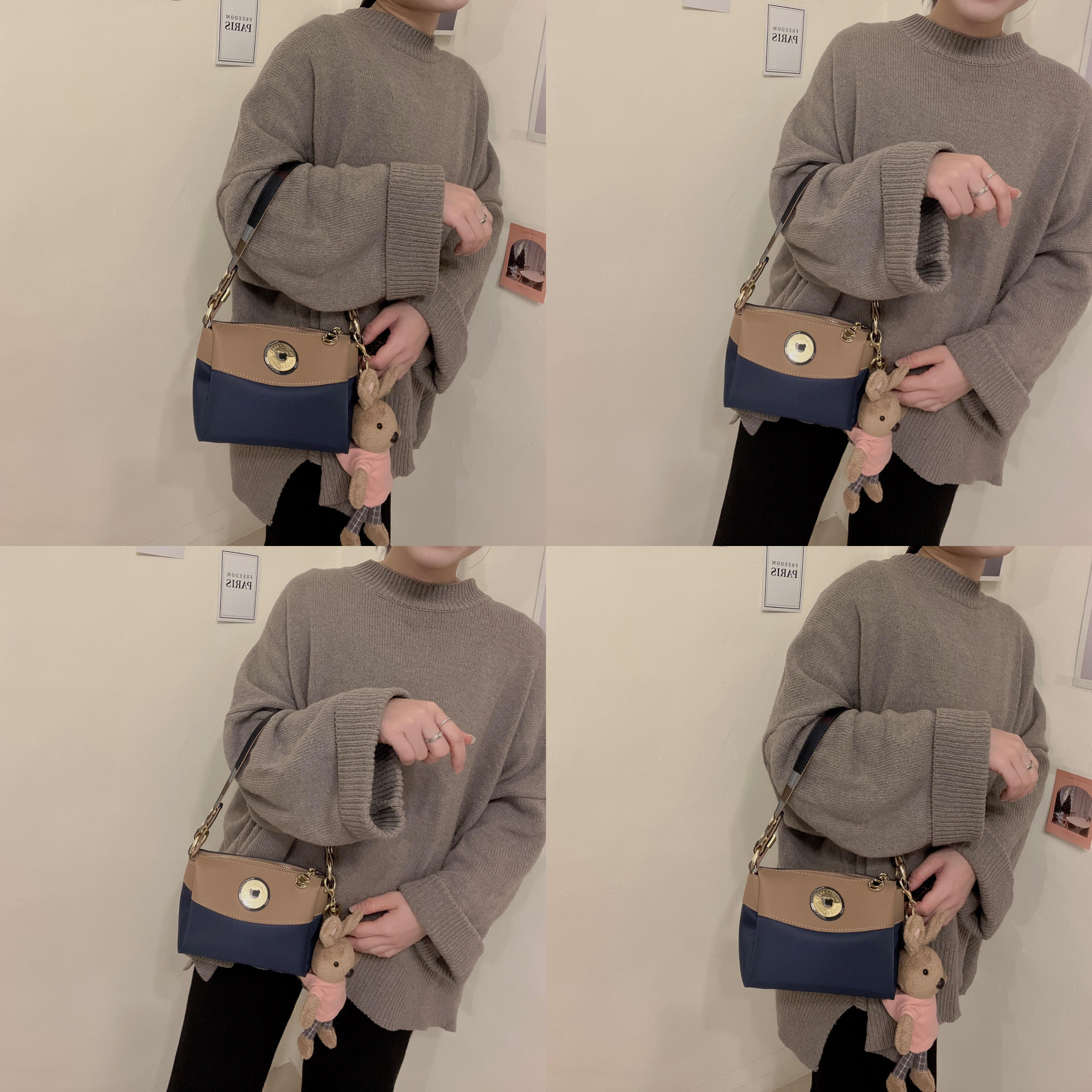 FamilyBear 卡其拼接土耳其藍 防潑水側背包 附小熊吊飾 #2026