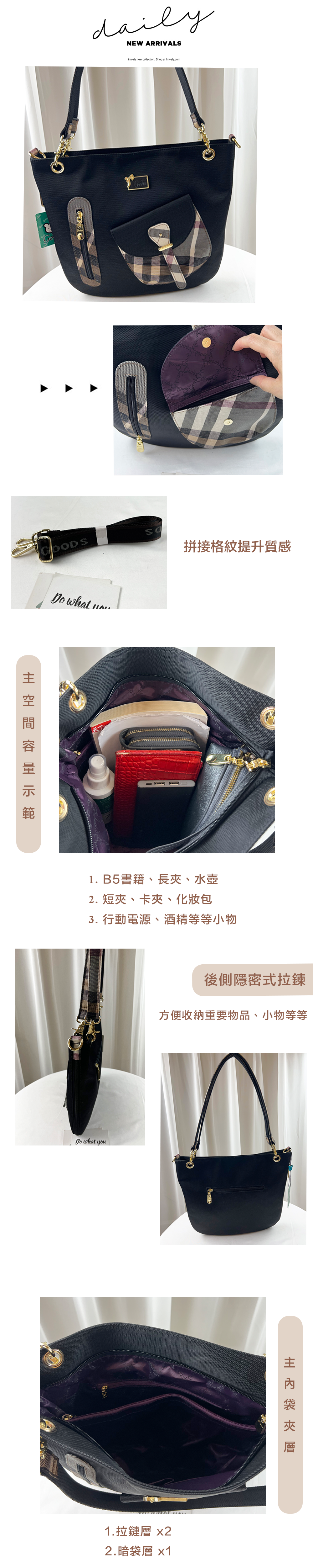 GOODS 金線大格黑防潑水手提包 / 肩背包 #1935