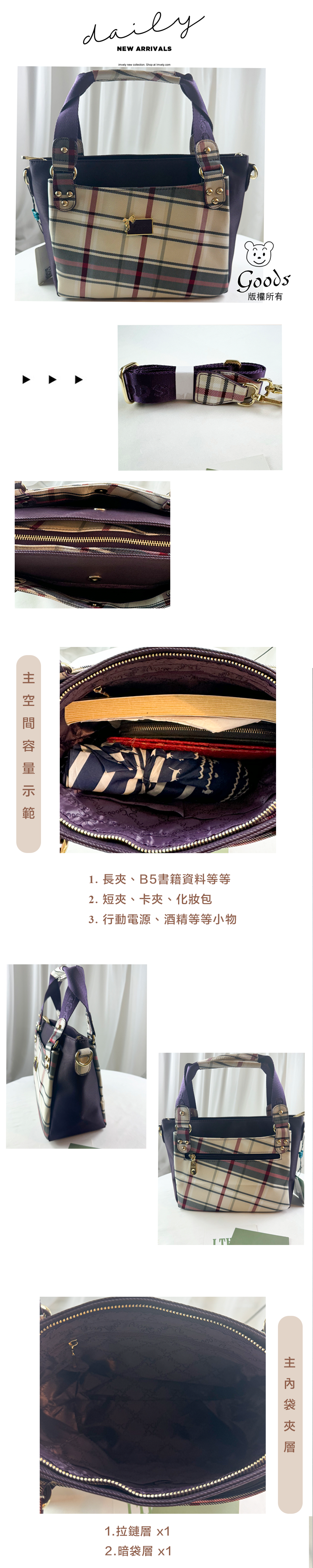 ✒︎採用防潑水布料,不怕下雨淋濕包包內裡重要物品。
