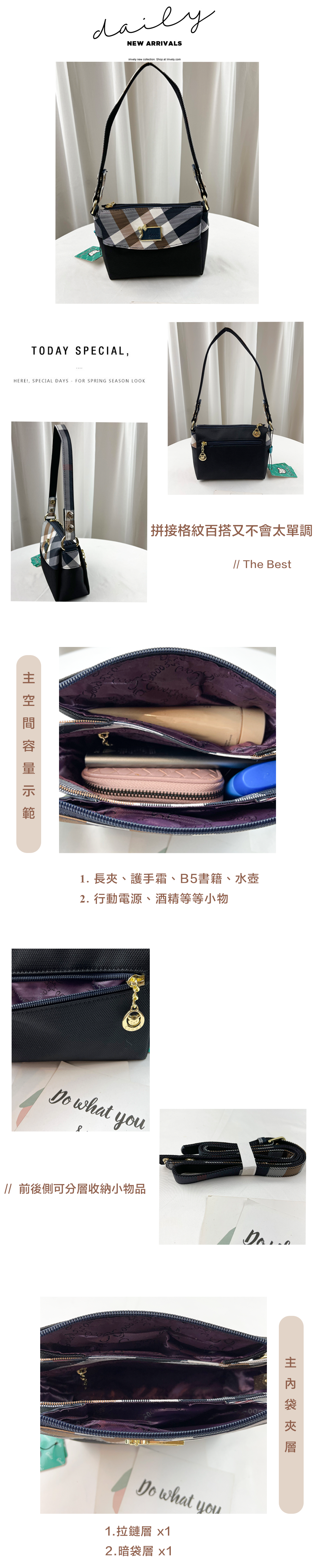 ●  規格:主空間x3  內拉鍊袋x1  暗格x1  後測拉鍊x1