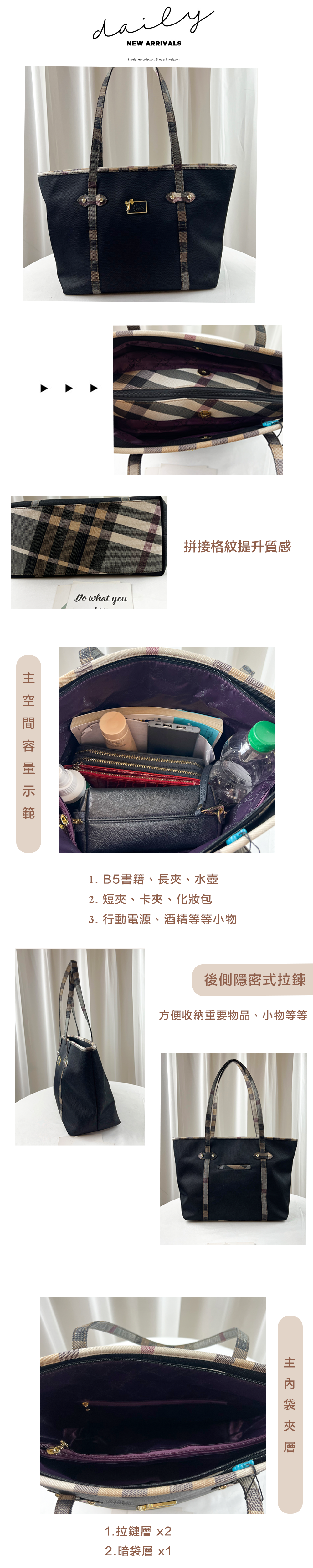GOODS 金線大格黑防潑水手提包 / 肩背包 #2042