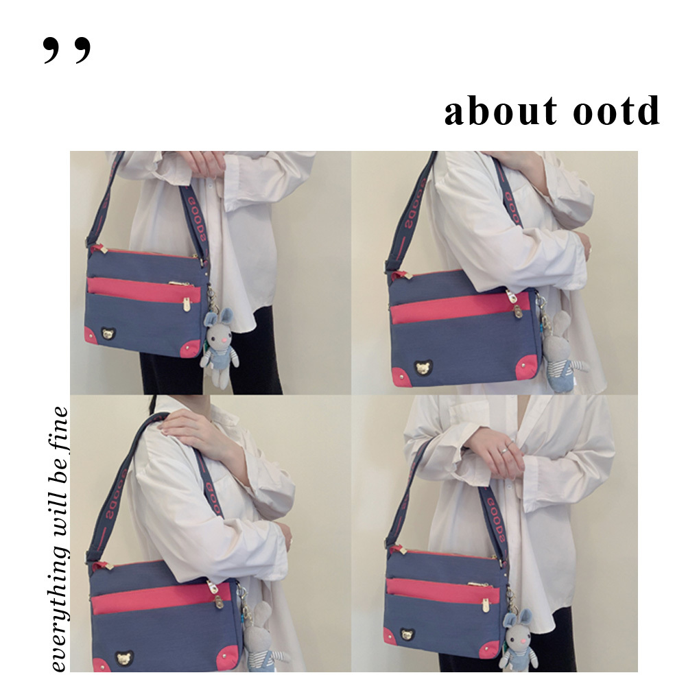 GOODS 綠桃拼色 防潑水側背包 附小熊吊飾 #2045