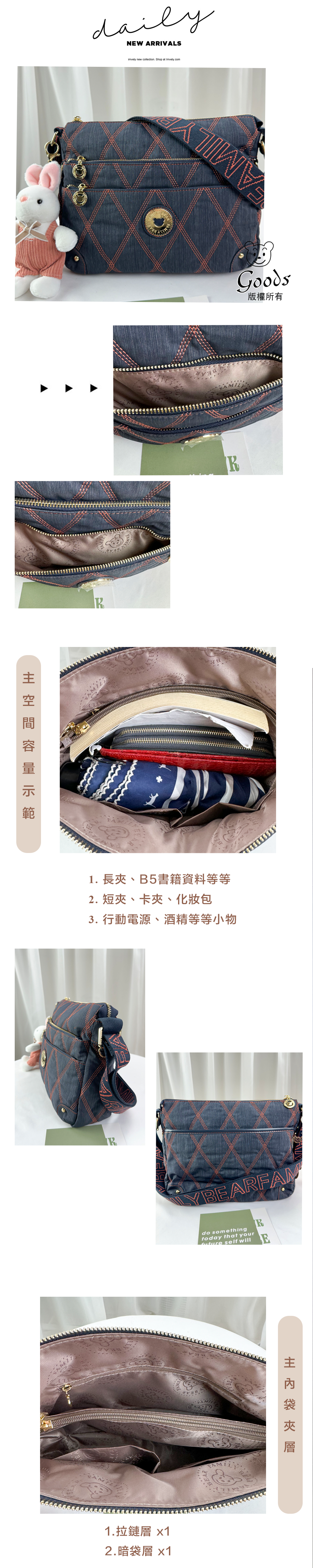 FamilyBear 藍橙菱格線尼龍側背包 附兔兔吊飾 #2045