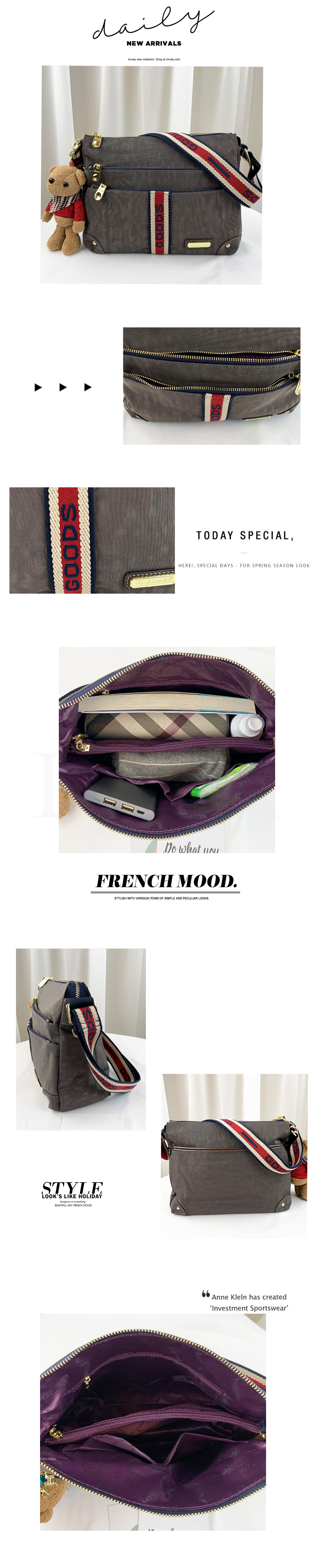 GOODS 織帶咖 水洗紋 三層拉鍊防潑水側背包 #2045