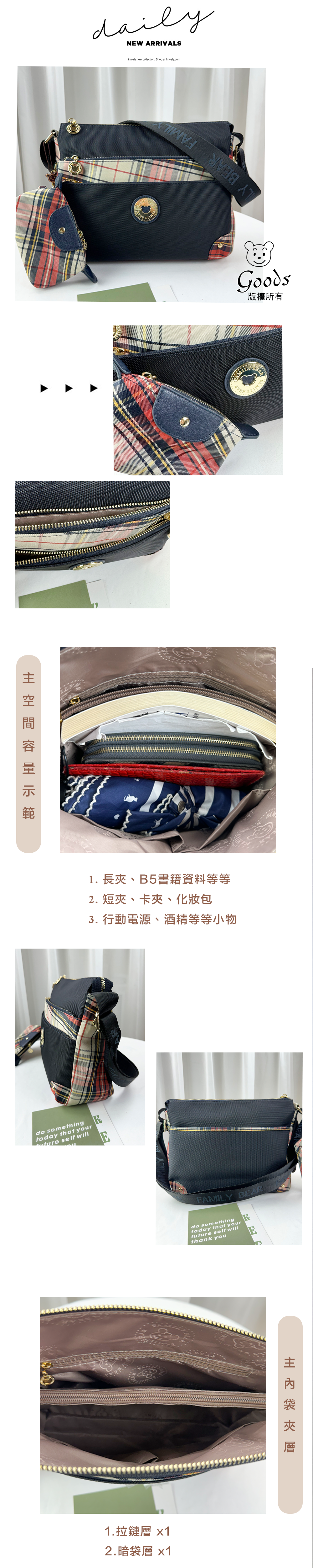 FamilyBear 橙格紋拼色防潑水側背包 附格紋零錢包 #2045