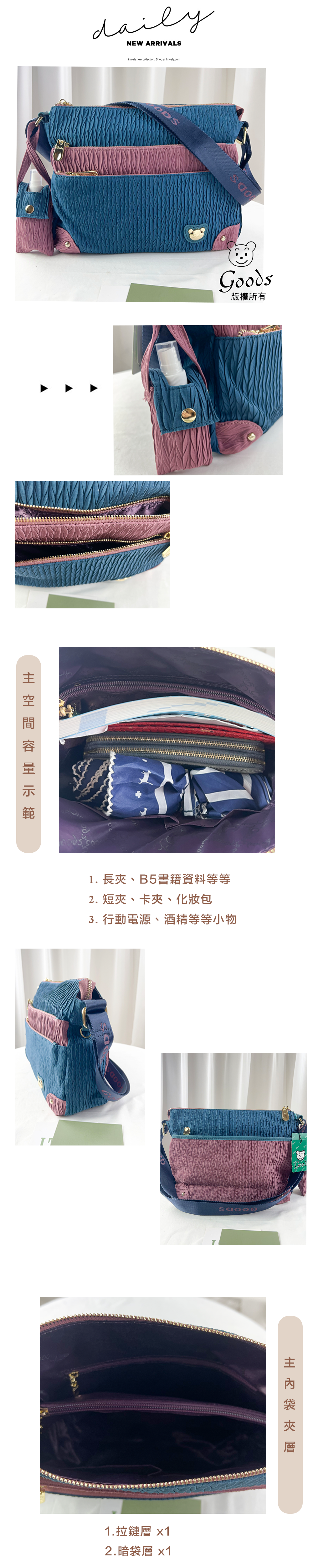 GOODS 湖水藍配粉防潑水側背包 附酒精保護套+酒精瓶 #2045
