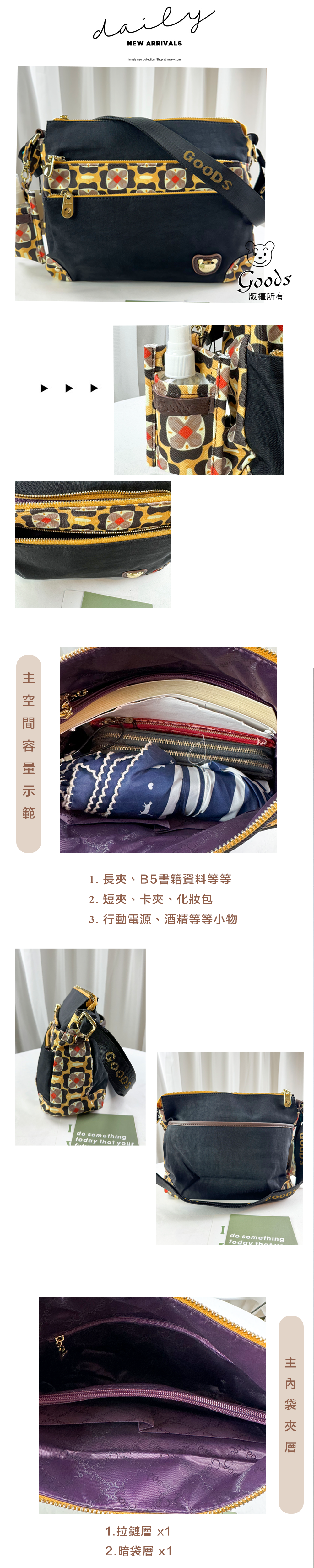 GOODS 黑黃花拼色側背包 附酒精保護套+酒精瓶 #2045
