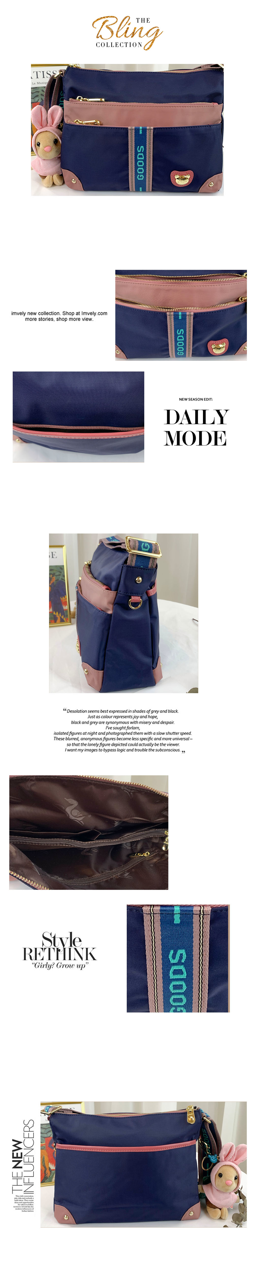 GOODS 織帶藍粉 三層拉鍊尼龍防潑水側背包 #2045