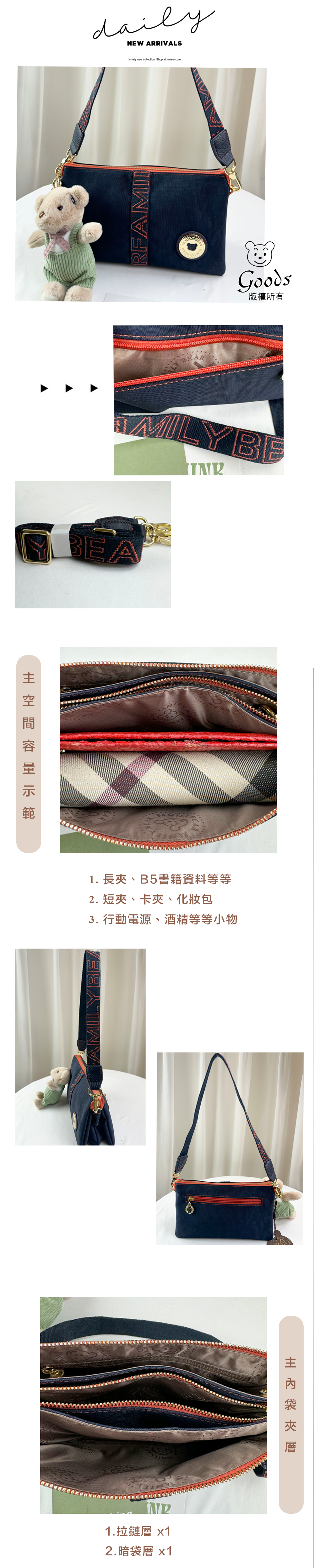 ●  規格:主空間x3  內拉鍊袋x1  後測拉鍊x1