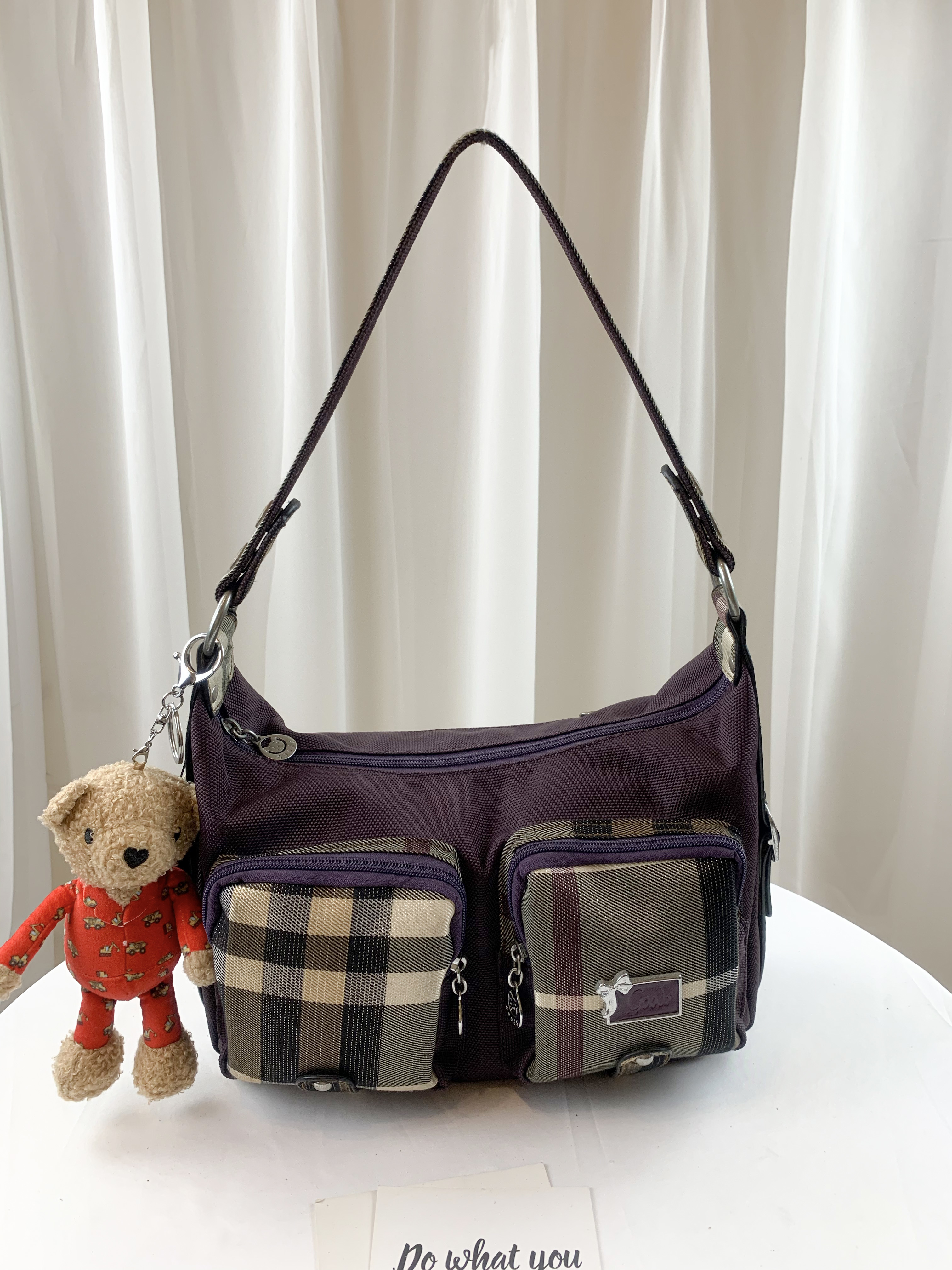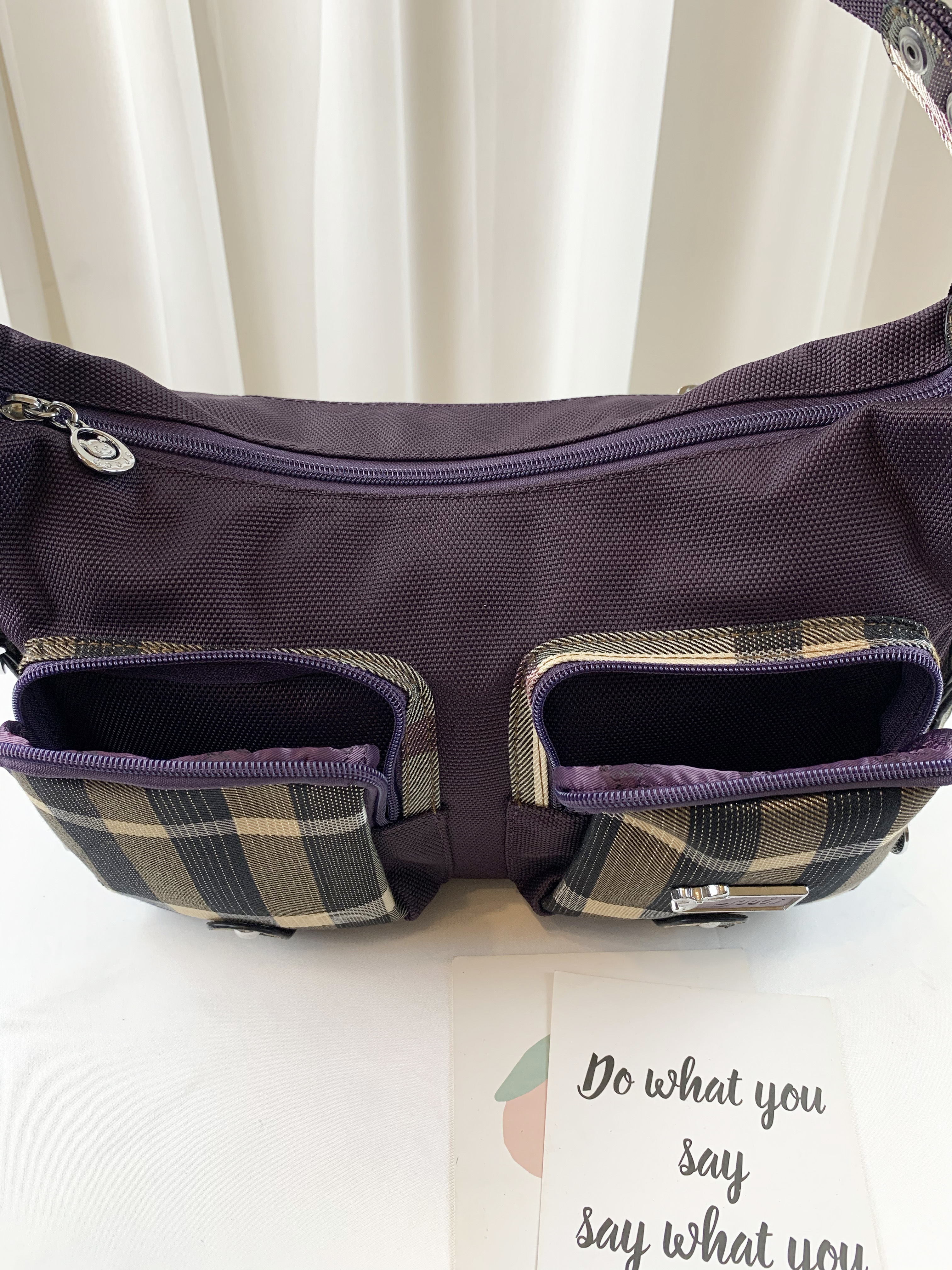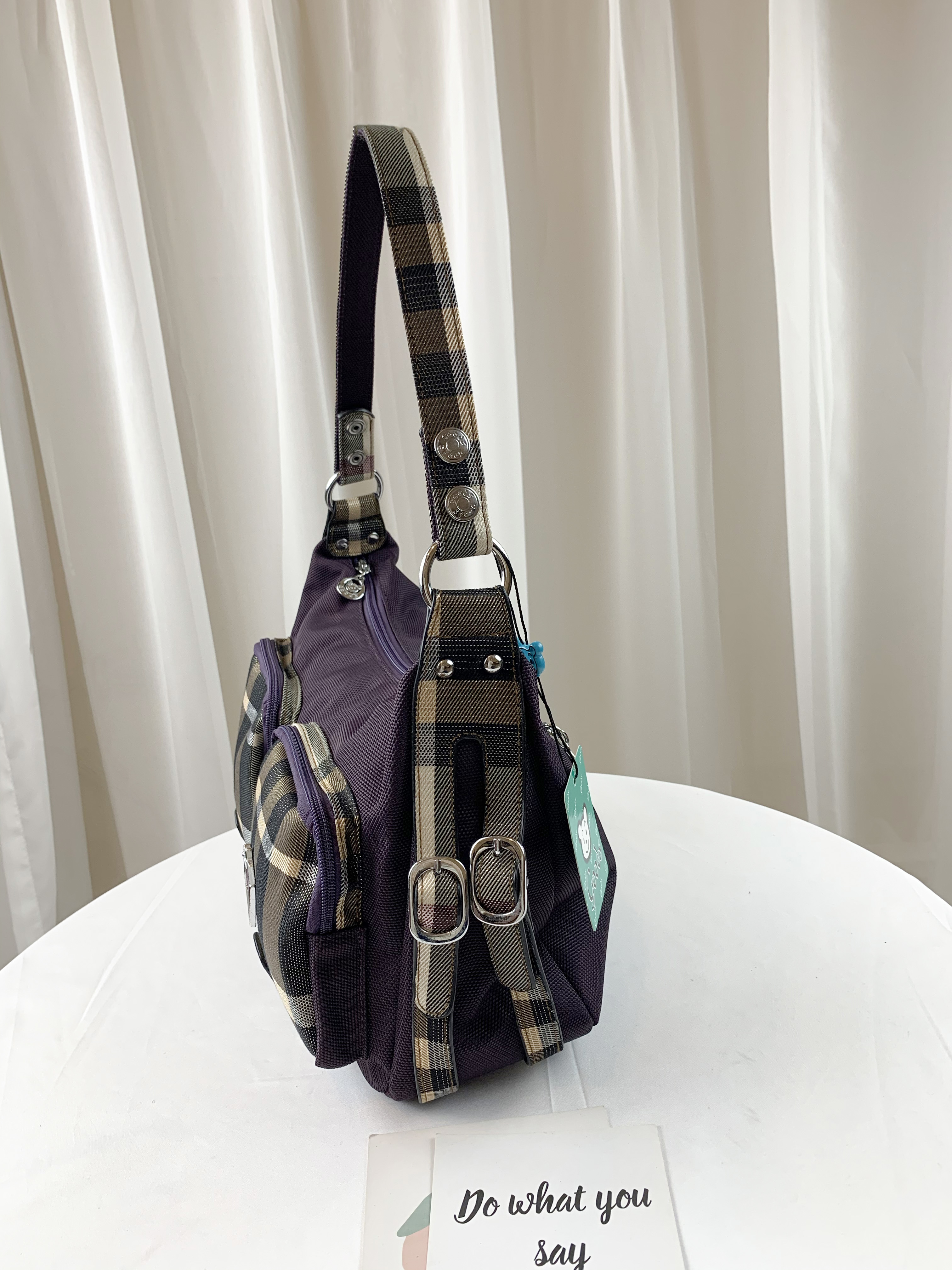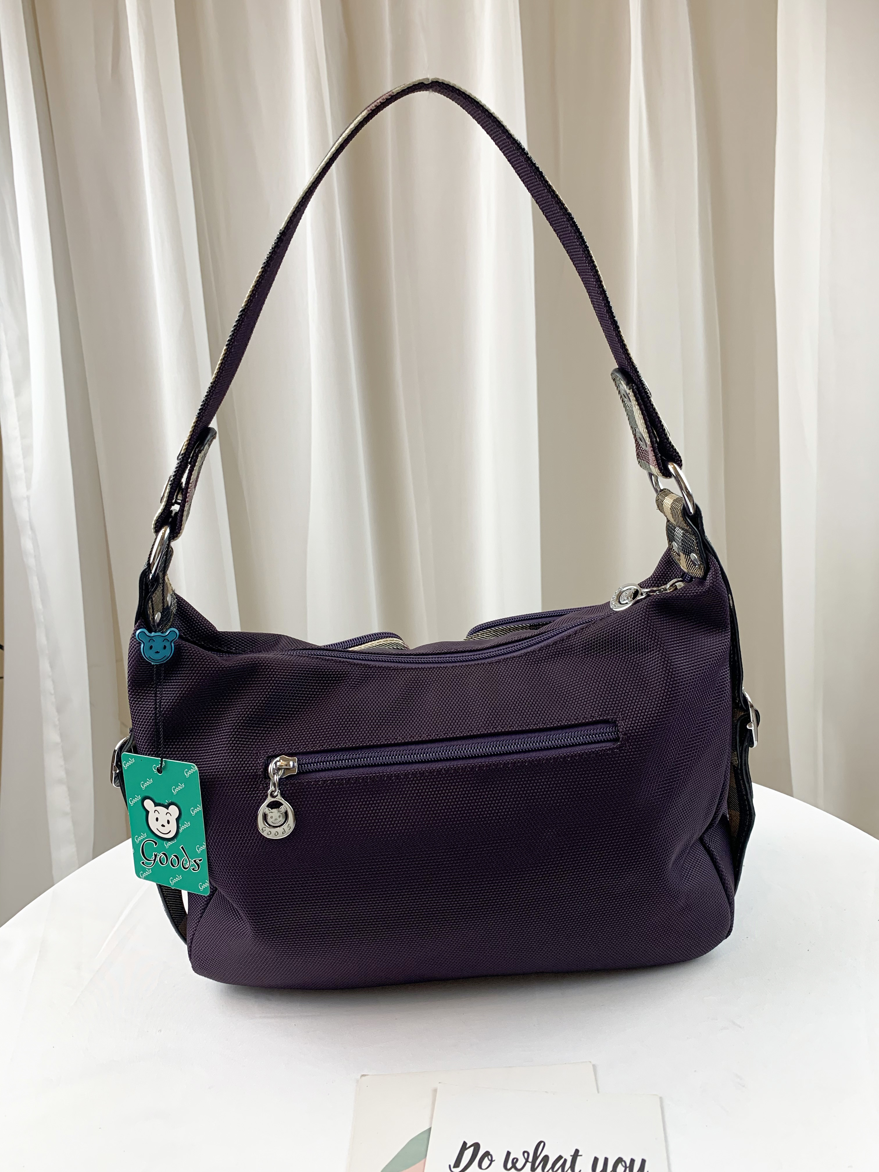 GOODS 紫格紋拼色防潑水肩背包 / 側背包 #2130