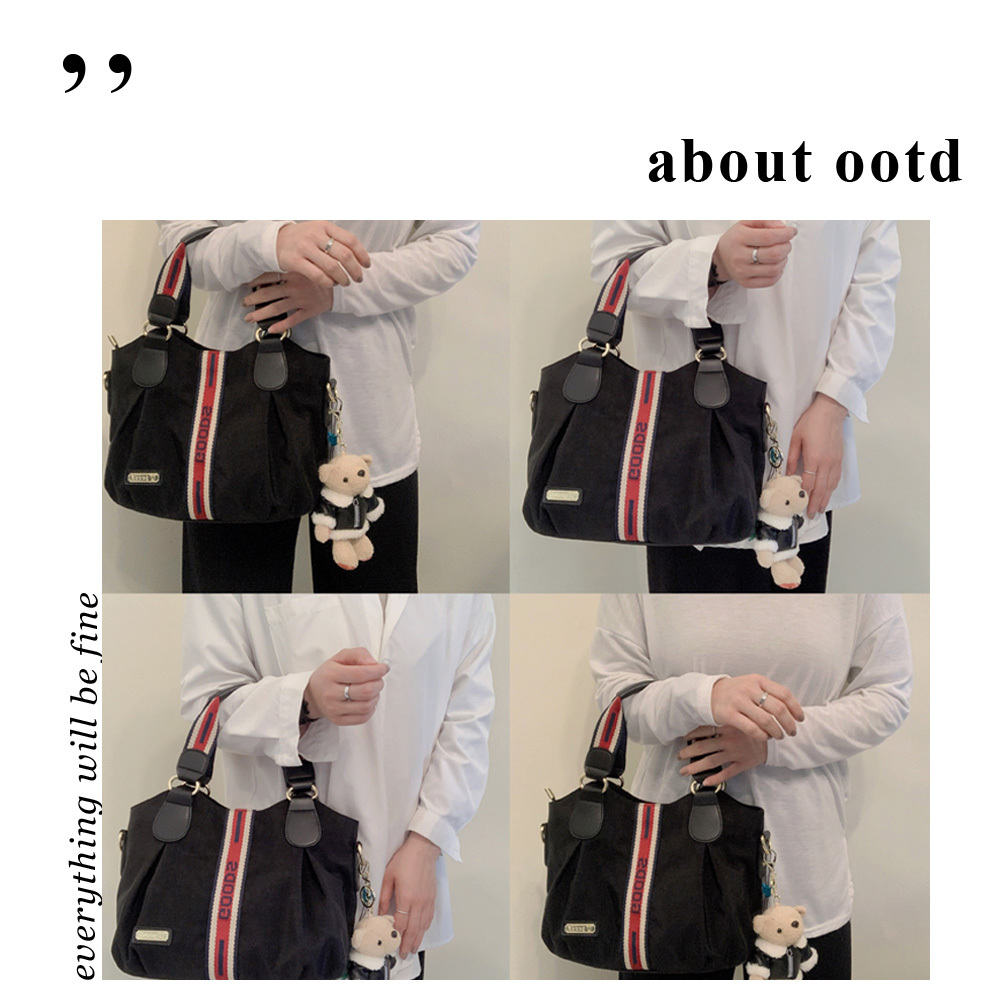 GOODS 織帶黑 防潑水迷你手提包 / 側背包 附小熊吊飾 #2131