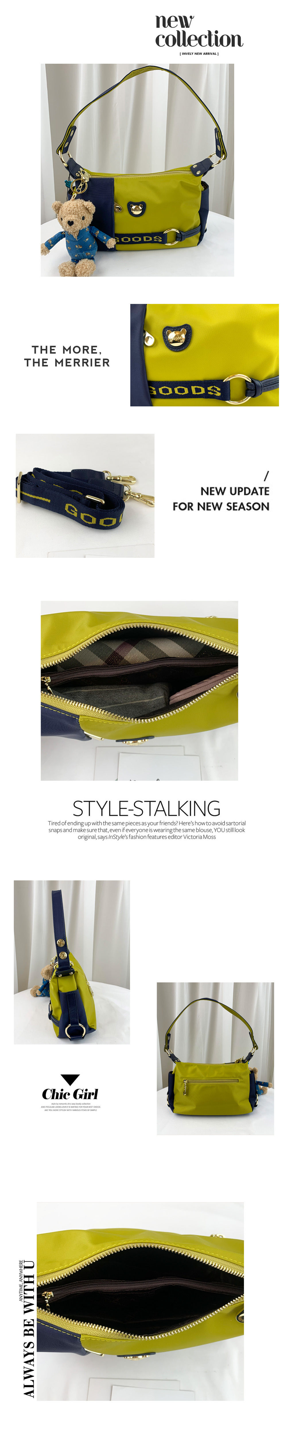 GOODS 織帶芥末黃藍 尼龍防潑水肩背包 / 側背包 附小熊吊飾 #2141
