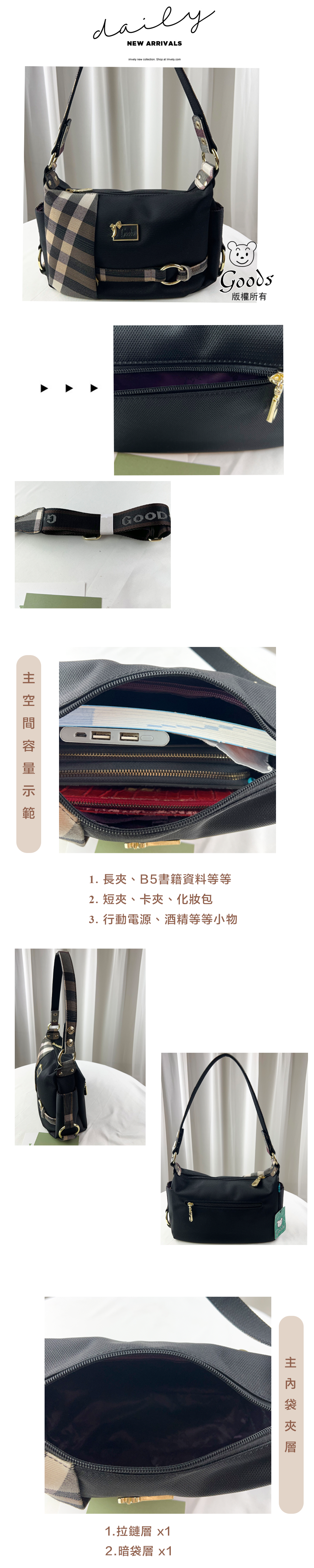 GOODS 金線大格黑防潑水肩背包 / 側背包 #2141