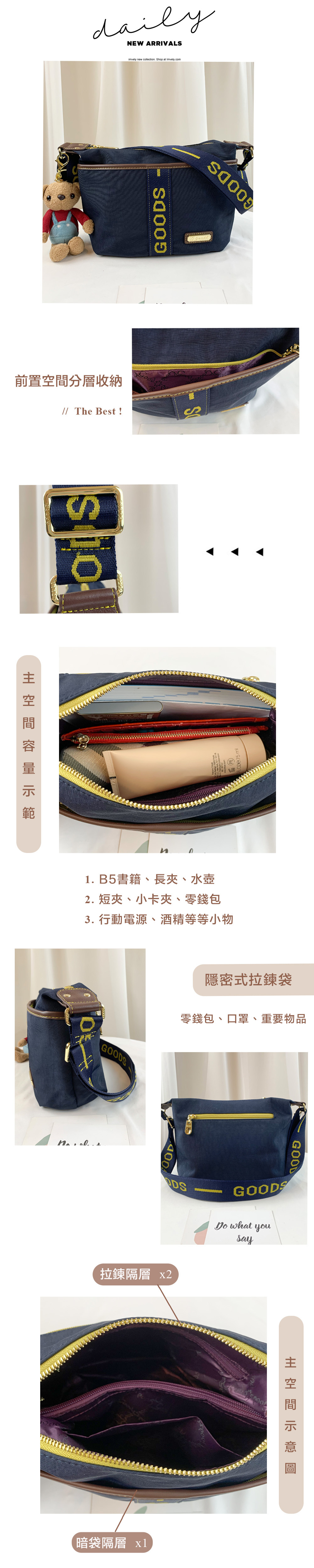 ✒︎採用防潑水布料,不怕下雨淋濕包包內裡重要物品。