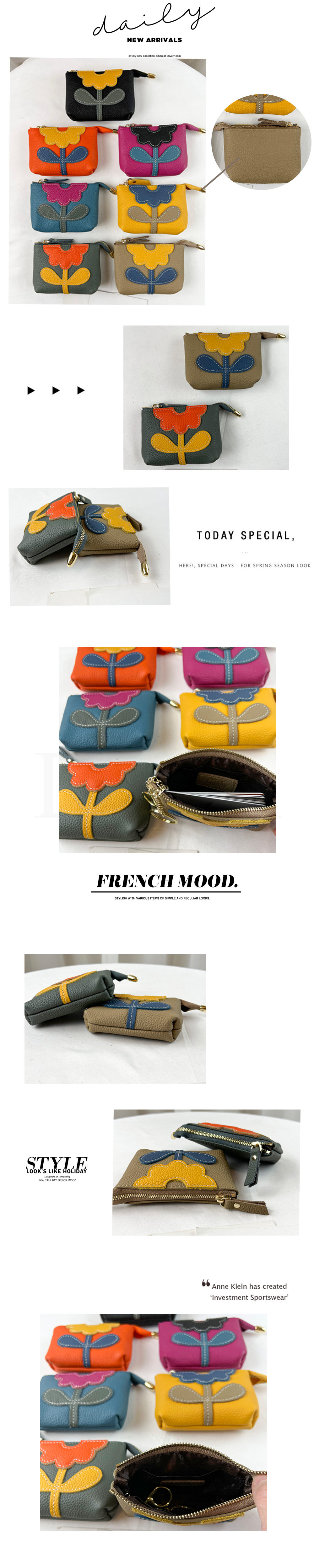 韓國花朵拼色真皮牛皮零錢包 #2203